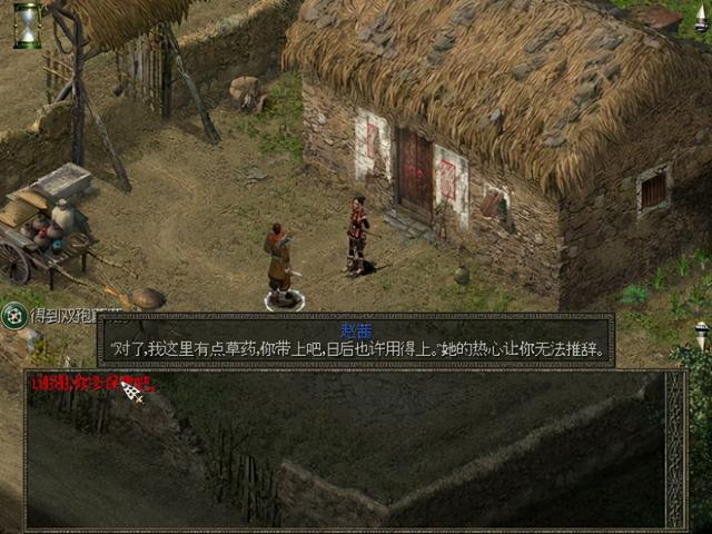 再帮老妪寻找菜谱(普通铜剑、经验+150、声望+2):在村右边中间的民居内有一位老妪,她正在寻找一本丈夫留给她的菜谱,答应帮她寻找后打碎屋外的菜坛获得菜谱。