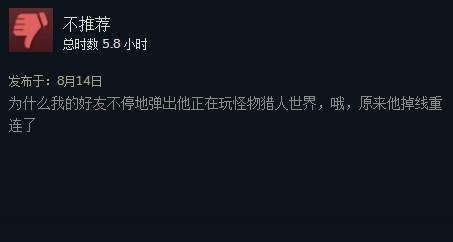 据了解,该游戏在Steam的峰值在线人数已经逼近34万,但联机糟糕、频繁掉线的影响了游戏体验,尤其是有玩家体验过WeGame版本之后,这种感觉更强烈。有网友吐槽,这其实就是单机版的“怪物猎人”。