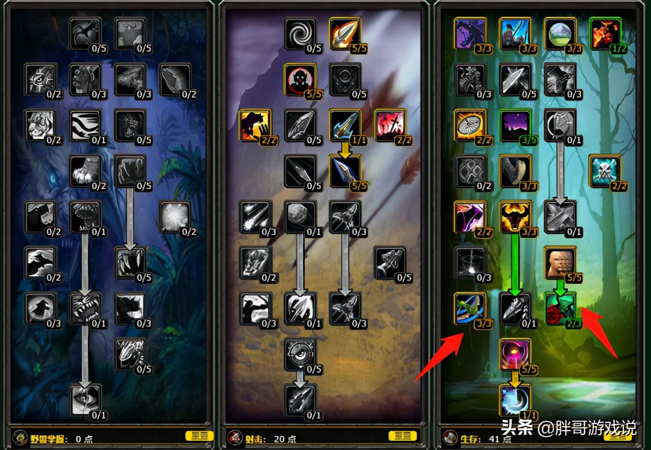 生存猎的天赋方案有很多,不过对于刚刚接触生存猎的玩家来说,还是应该优先选择20/41的常规天赋。