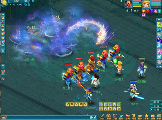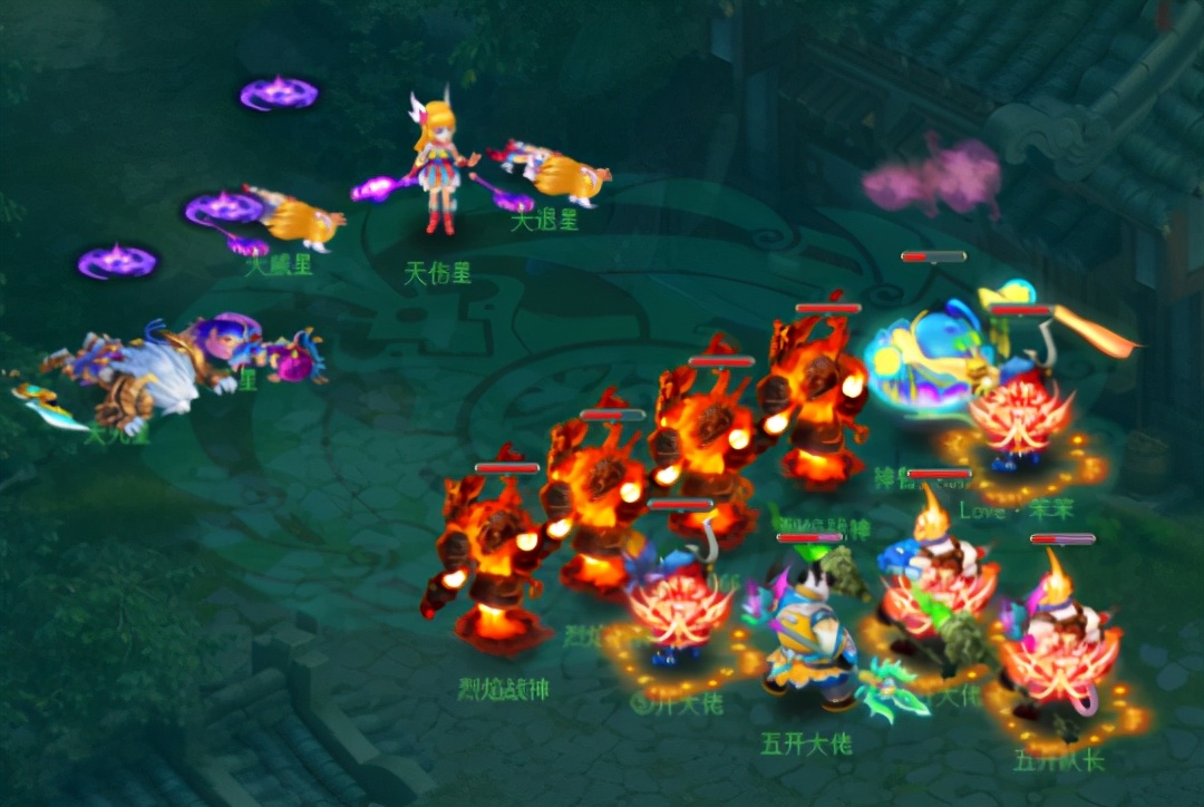 适合虎阵、风阵。这是一套PK很强,日常也不弱的阵容。天宫惊雷斩搭配无名迟月+固魂的点杀搭可以打出不俗的单体伤害,天宫星爆雷霆搭配龙宫秒五可以打出不俗的群体伤害。其中天宫要学追魂,和速龙的龙隐配合可以更加灵活地补刀。