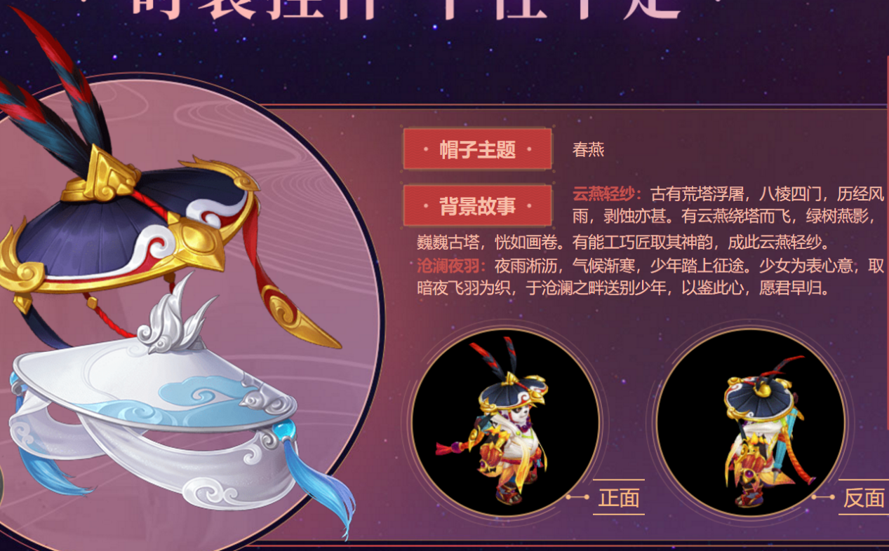 除了游戏体验之外,我还是会注重人物的衣着搭配,对于即将上线的服装配饰——披风和帽子相当期待。全新内容也将同时上线。这两件挂件都有专属的背景故事,带着浓浓的古风,融入诗词,仿佛在借一件旧物诉说一段故事。