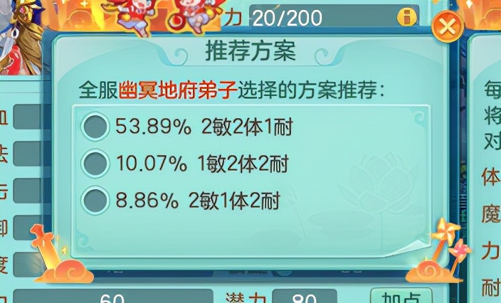 在此前的战斗环境调整中,地府得到了技能“阴魂不散”可以首回合释放的加强。这无疑极大地影响了当前地府的战术玩法,越来越多的地府开始搭配如五贪狼等偏进攻性队伍,以追求更加稳健的点杀效率,在当前的PK环境中表现亮眼。比如在2021神武之战冠军联赛总决赛中,风云再起A队的地府就以一手“阎罗炼狱”一锤定音拿下冠军。目前地府的人物加点方案比较统一,2体2敏1耐的加点可以适用绝大部分场景的战斗。