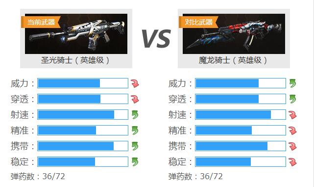 首先从颜值来看,两把枪都挺帅的,但是小编更偏好魔龙骑士一点,模样很酷,名字也感觉霸气一点,但是从日常入手程度和实际效果来看,许多人可能更看好圣光骑士!