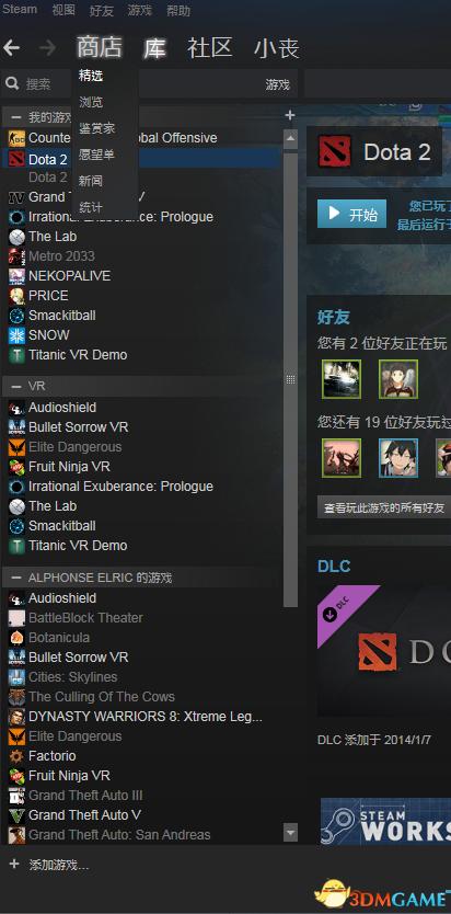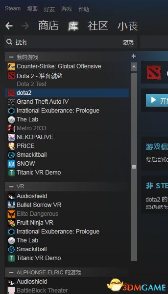 在左下角 有个添加游戏 点击它找到 dota2游戏文件