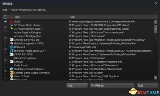 像这样 勾选dota2 就可以了,点击那个添加所选程序。