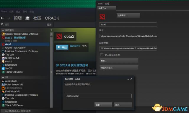 然后右键下面的那个dota2 属性 -设置启动项 输入-perfectworld -确认