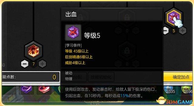 至于出血这个技能的伤害完全取决于角色的伤害,所以实力不济时该技能作用微弱,但这里为何点了5点,主要还是为了增伤的目的(使目标流血也是变相提升了角色的输出量)。