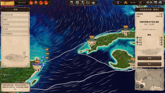跑商时除了买卖的问题,如何规划路线也大有学问。本作为了突出真实性,在海洋中设置了洋流、风暴、风暴眼等要素,玩家在规划路线时就必须考虑这些要素。因为玩家所处的年代是工业革命之前,因此船舶都是风帆动力,因此风向和洋流就显得十分重要。规划合理的航线,兼顾自然因素的同时也要考虑到沿途的商品买卖,毕竟跑商赚钱是第一目的,因此在规划商船航线这方面就显得有一点硬核了,新手玩家需要一定时间才能掌握。