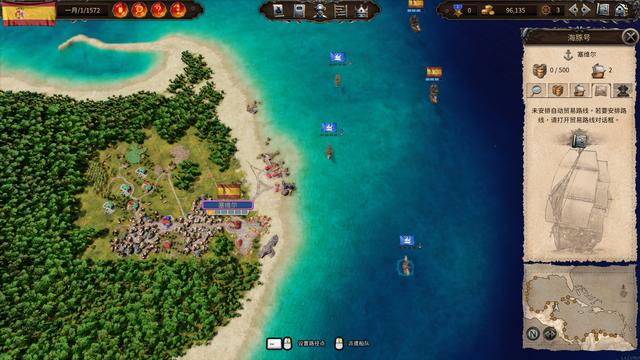 游戏包括多种模式,新接触此类游戏的玩家在完成新手引导后最好从剧情战役开始入手。玩家在游戏中从一个只有几艘帆船的小人物,通过从一座城市到另一座城市的跑商来赚取财富,进而扩充船队,以及经营自己的殖民地,扩大当地的生产,养活更多的人口。跑商自然是低买高卖,这一点在游戏里还是比较容易掌握的,因为游戏里每个殖民地城市的市场物资多寡都可以比较清楚地看出来,因此玩家在选择在本地购买什么商品时就不会盲目;同样地,在选择去何地出售商品时,也能有明确的目的地。