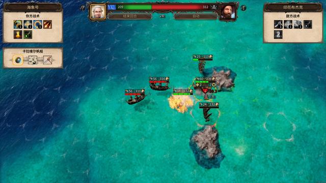 海战玩法是本作的另一个要点。本作的海战玩法为回合制战棋形式,玩家与敌人轮流行动,玩家需要合理布局,不仅在战船的移动上需要充分考虑对敌人的攻击和规避,还需要充分利用战船上的各种战术道具。战棋式的海战相对于纯粹的回合制战棋游戏来说,需要考虑的要素没有那么多,甚至在我方数值碾压对方的时候采用自动战斗,但大部分时候还是需要玩家手动规划每一回合的行动,才能尽量减少损失、扩大战果,策略性还是比较强的。