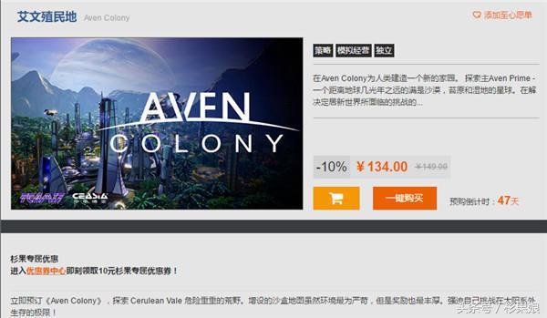《艾文殖民地》Steam国区售价149元,预购期间还有10%off的优惠,同时可获得一张额外地图。而在杉果商城购买本作可在9折的基础上,额外使用一张10元优惠券,最终购买价124元,相当于有着25元的首周优惠。本作支持简体中文,玩家们不必担心语言成为体验游戏的障碍。