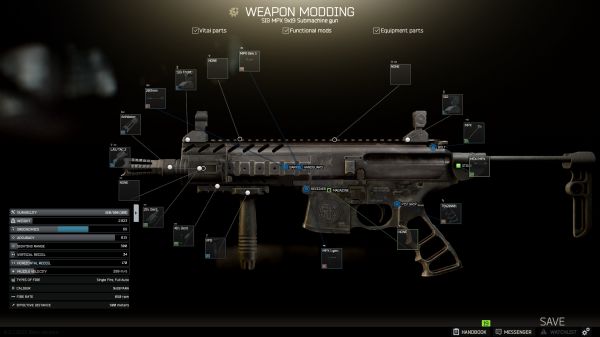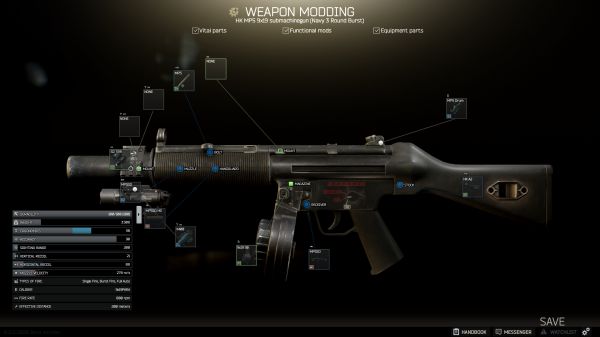 重量要低于3.8kg,需要有50发弹鼓。需要装备MP5SD消音器。需要有战术手电(或者手电+镭射组合)。