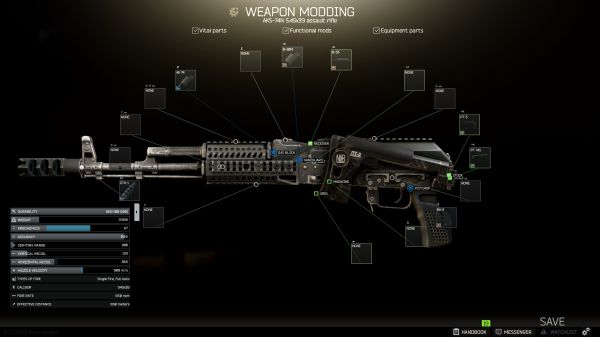 要有Skeletonized AR-15手枪握把,要有适用于7.62x39、5.56x45、9mm的Annihilator AR-15消焰器,瞄具有效距离要大于300。
