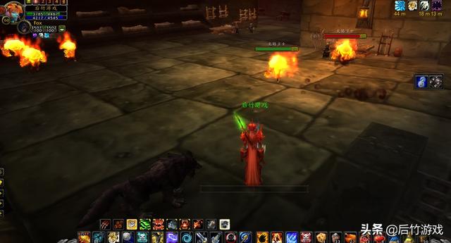 一直靠左边墙走,不会被火烫。到需要跳火的位置,首先检查岩浆里是否有游荡的火元素,射箭把它拉过来,用宠物吸引仇恨,然后我们开始跳。