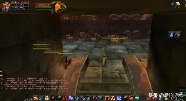 如果没有做女招待(魅魔)的任务,我们是没法直接开酒馆门的。这里有个隐藏任务,找酒吧老板买6个黑铁酒杯,然后给绿名的爵士倒三次酒,这时酒馆门就破开了,原本中立的石头人变红,化身守门人。我们用宠物把石头人引开,人就可以通过。
