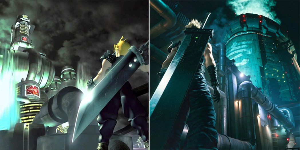 《Final Fantasy VII》对于PlayStation而言,可谓有着特殊意义的一款RPG游戏,左为1997年之游戏图片,右为即将发售之重制版画面。
