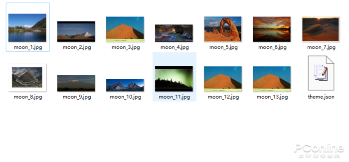 theme.json修改完毕,接下来就是将一系列的图片保存到与它同一目录下,并且重命名为moon_*.jpeg格式,小编测试目前支持jpg以及jpeg格式文件。