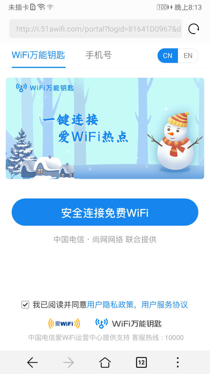 WiFi万能钥匙将“一键连接”功能与中国电信爱WiFi公共热点相结合,帮助用户快速找到附近的免费合法的WiFi热点,更免去了填写手机号码、发送短信、填写验证码等操作步骤,进一步提升了连接公共WiFi的便捷性与安全性。