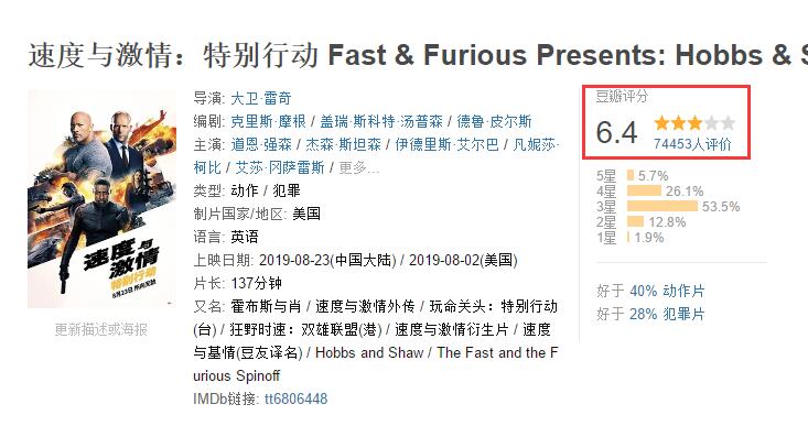 速度与激情特别行动豆瓣评分(99%影迷都认可的电影评分)
