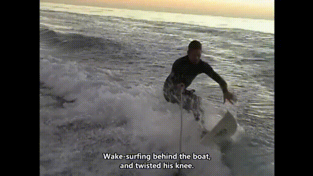 在《碧海追踪》的剧组,他的确玩得非常开心。结果,他在滑水时因为太嗨扭伤了膝盖。