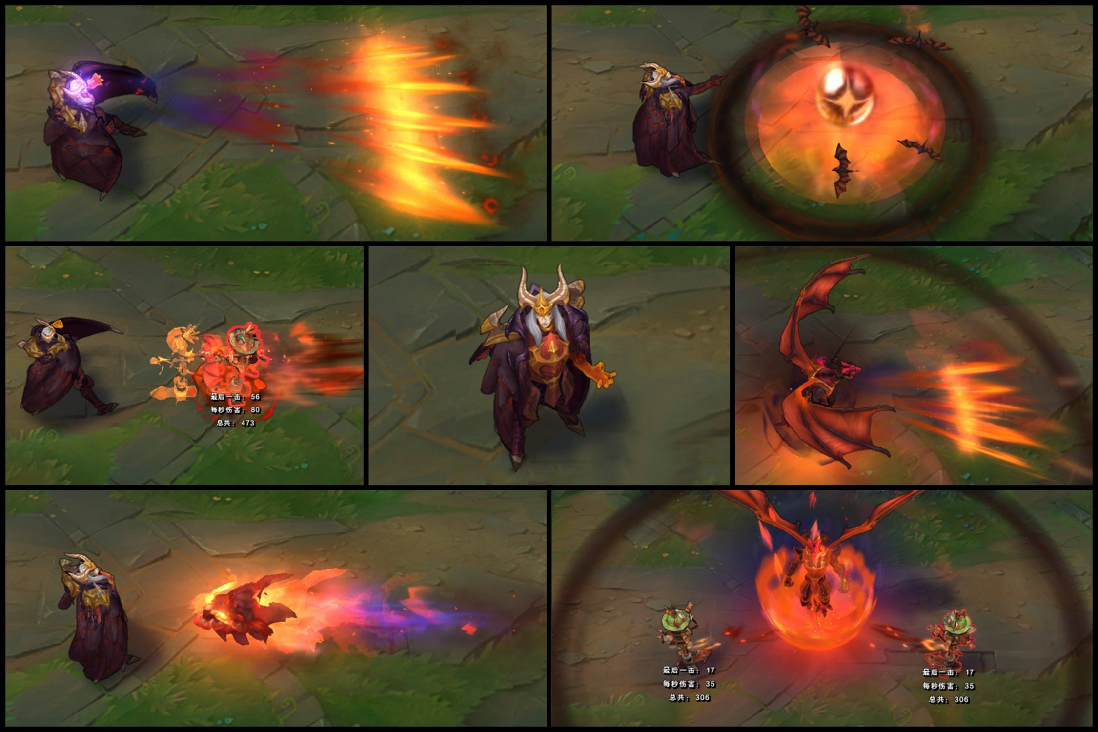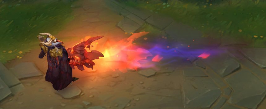 另外释放q技能地面会有符文,w技能特别像索伦之眼,命中的魂屑也是变成了小红龙,e技能二段拉回是个龙头,最霸气的自然是大招,斯维因整个人都变成巨龙仿佛死亡之翼降临,大家应该在云顶里见识的也比较多了,就不过多介绍了。