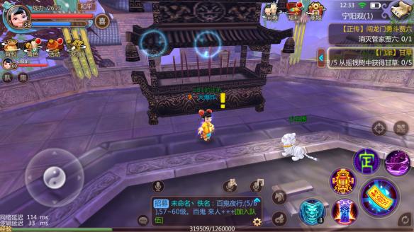 这个是有宁海的前置任务,要能到京城的时候在回来做,位置在宁阳观门口台阶下面空地的上空,有个NPC。