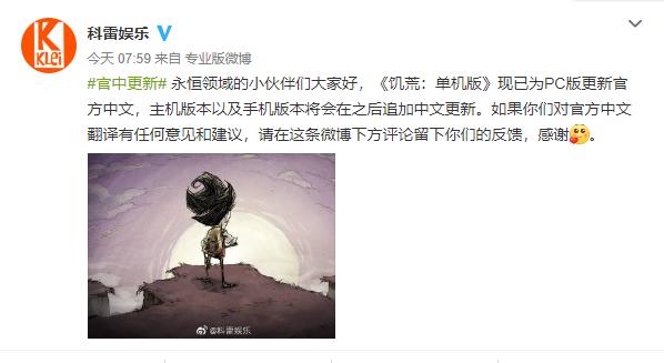 今天(8月14日),PC版《饥荒:单机版》正式推送了官方简体中文,而此前《饥荒:联机版》官方中文已在今年3月追加。开发商科雷娱乐表示,游戏主机版和移动版的官方中文也会在未来推出,时间未定。