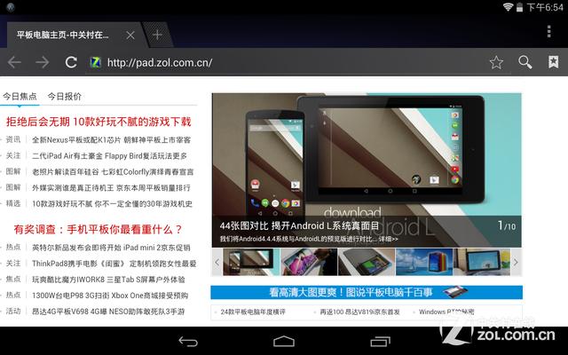 因为分辨率达到了1920×1200,16:10的分辨率相对16:9的分辨率,可以在横握的时候浏览到更多的网页内容。在上下拖动网页和缩放网页的操作中,也能基本保持流畅。