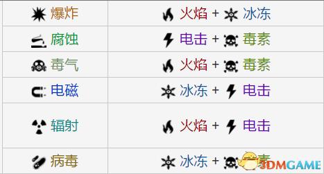 所以,当你面对G系敌人的时候,可以配置出带有腐蚀属性的武器,也就是毒元素+电元素。因为我腐蚀元素对大部分G系敌人都有克制效果,即使对上合金装甲的敌人,也可以通过腐蚀触发来削弱他们的护甲。不过在boss战时,有部分boss不吃腐蚀,所以可以配出辐射。