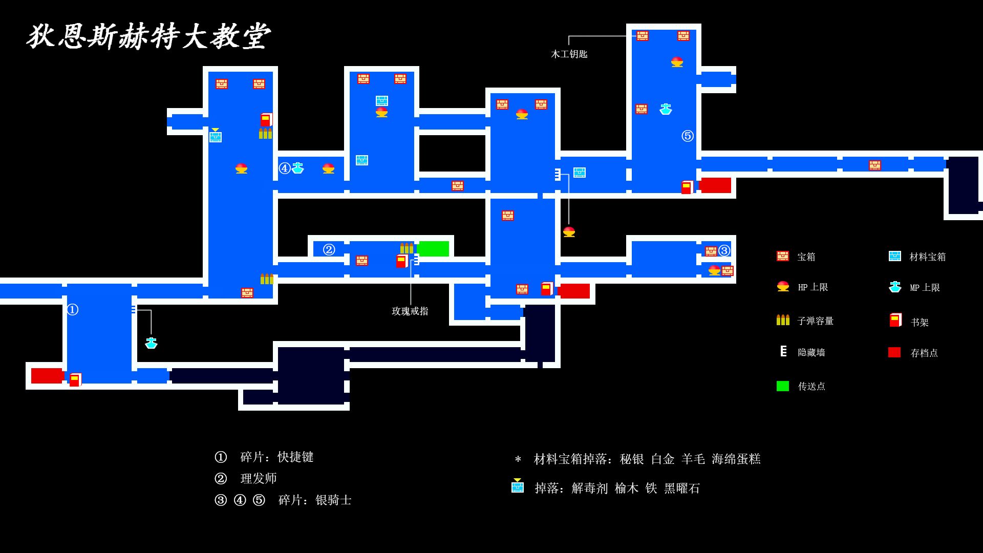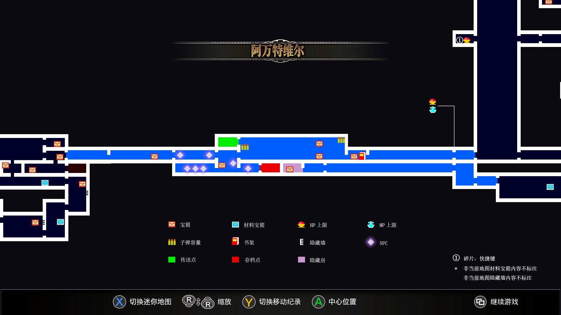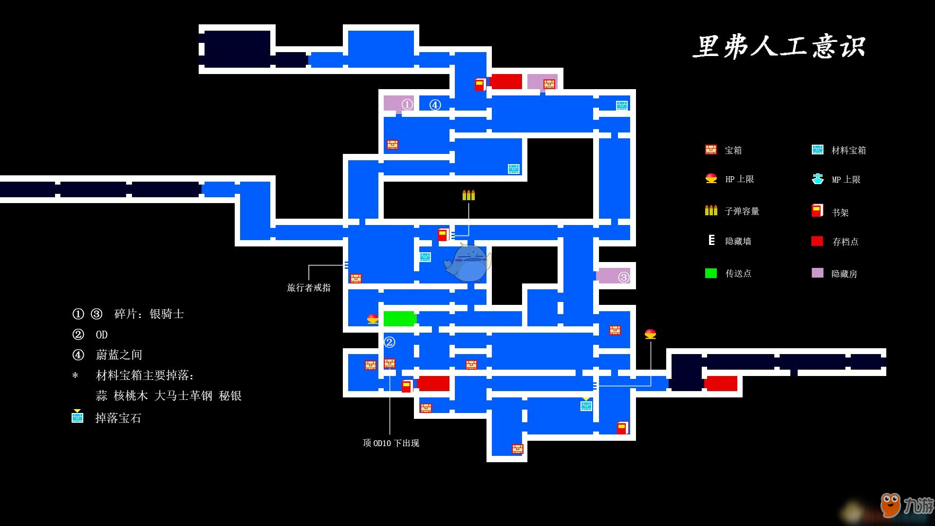 本场景因为是本作少有的立体场景,因此道具的分布在平面的地图上表现有点奇怪。但是除了神盾胸甲难找,没有其他任何难找的关键任务道具。完全可以后期学了大跳之后再来收刮✦大跳即碎片:跳高,二段跳+魔牛的羽毛合成,魔牛的羽毛在东方实验室击杀牛怪掉落。早合早享受,属于必合碎。