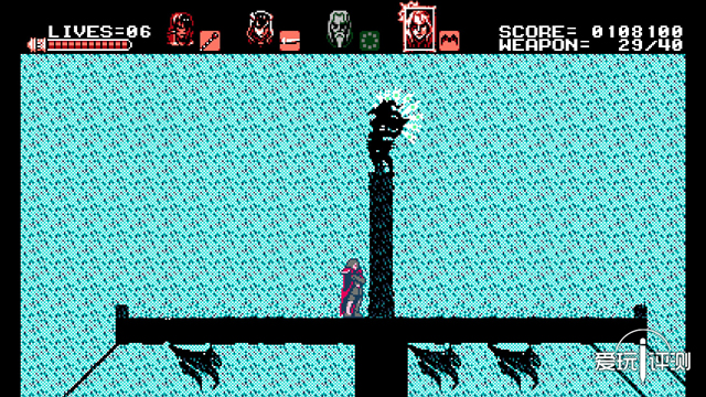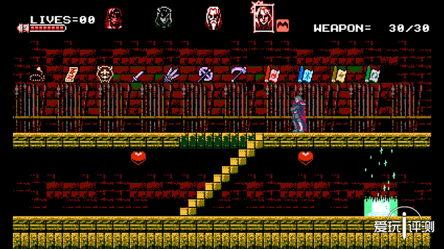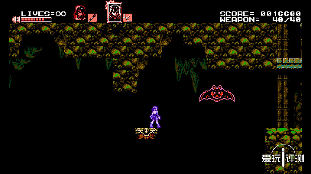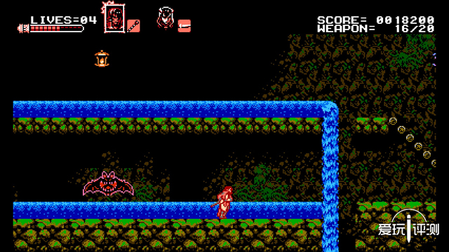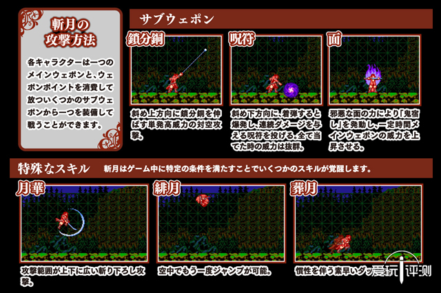 然而真正让游戏变得优秀的,从不是什么情怀,自身的可玩性与乐趣,才是一款游戏的灵魂。在《月之诅咒》怀旧的外表下的,是出色的机制与极高的可玩性,这部精神续作不仅高度形似,而且难能可贵地做到了神似。本作继承了恶魔城的像素风格,以及场景、敌人的设计,还从历代恶魔城中吸收了大量的核心玩法。在现在玩家看来,《月之诅咒》操作手感堪称“糟糕”,角色只能攻击左右,不能斜向攻击;跳跃手感僵硬,空中不能改变方向;起跳时必须方向键与跳跃键同时按下,否则就变成了原地起跳;再加上被击中后夸张的击飞效果,带来了高难度的平台跳跃——恶魔城里血总是不缺的,因为你会在血用光前就摔死在某个沟里。