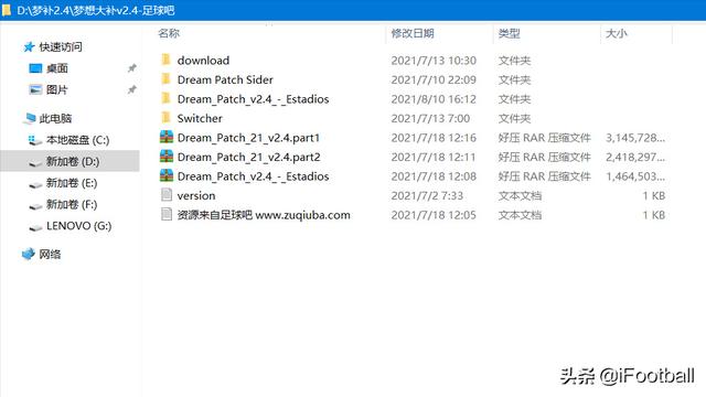1.进入【足球吧】网站,找到【PES2021梦想大补v2.0+v2.1】(解压前51G),以及配套的球场包【PES2021梦想大补专属球场补丁包v2.0】(解压前91G)。下载。