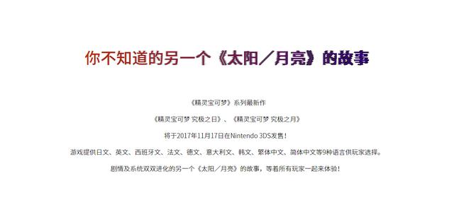 昨天晚上任天堂举办了直播发布会,公布了《口袋铁拳DX》登陆Switch和《口袋妖怪:金银》、新一代正作《口袋妖怪:究极日月》登陆3DS等令人兴奋的消息。在这之后大家都关心的一个问题就是游戏支不支持中文,而在今天《口袋妖怪:究极日月》的简体中文官网正式开放了!
