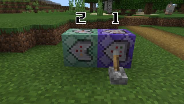 拿到命令方块后,在村子里任意地方,按照下图所示摆放两个命令方块