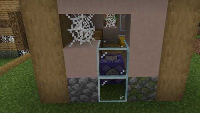 首先在村民家里放上命令方块,在命令方块前安装玻璃