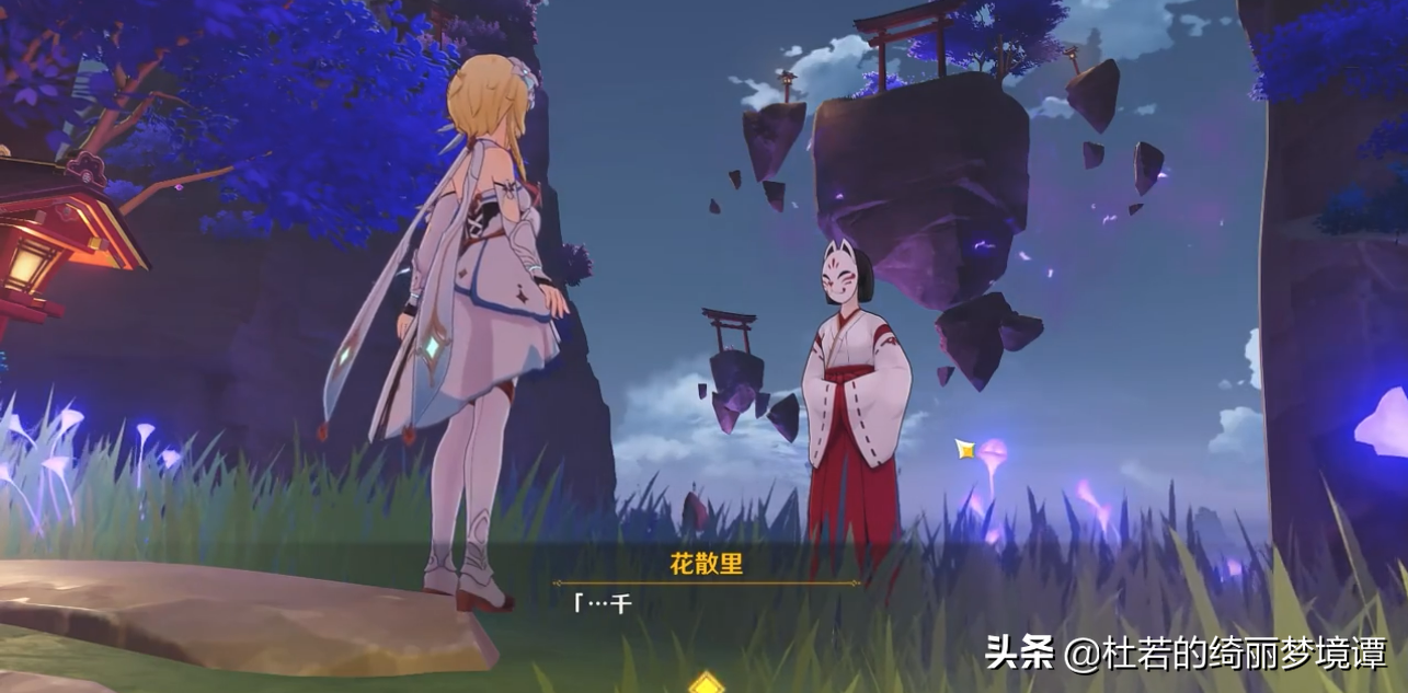 前往影向山底部的裂口,到了位置你会看到一个穿着巫女服的小姐姐,她就是花散里跟她说说话推进任务,这个角色出自日本名著《源氏物语》,想要深度了解下这个人物的可以去看下,性格巨温柔,不过她现在让我们跳进去。