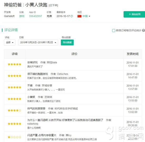 从相关数据来看,在11月1日,《神偷奶爸:小黄人快跑》还有近万的下载量,以及玩家的评论,但是到了11月2日凌晨,游戏便突然遭遇下架。截止下架前,游戏在App Store畅销榜上的排名为730名。