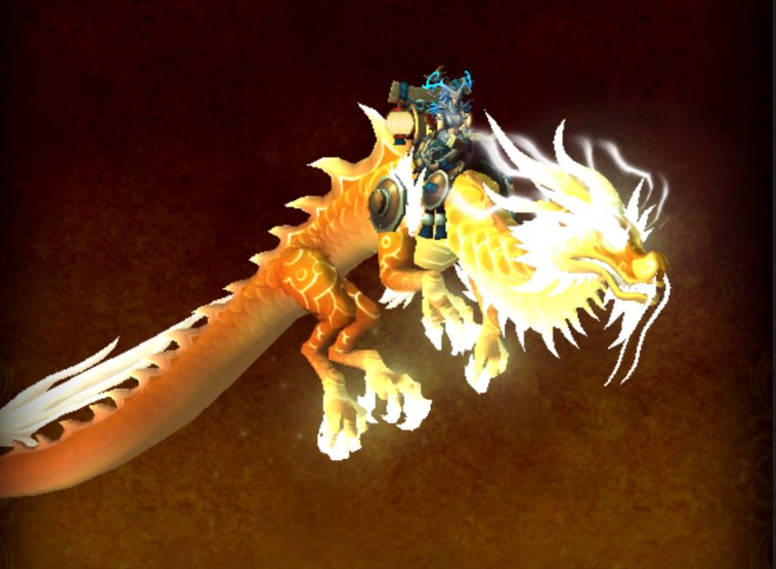 第八只:的话是这个昆莱山的世界boss怒之煞掉的这个神圣玛瑙云端翔龙,这个可以算得上是魔兽掉率最低最低的,有这个坐骑的人很少的。