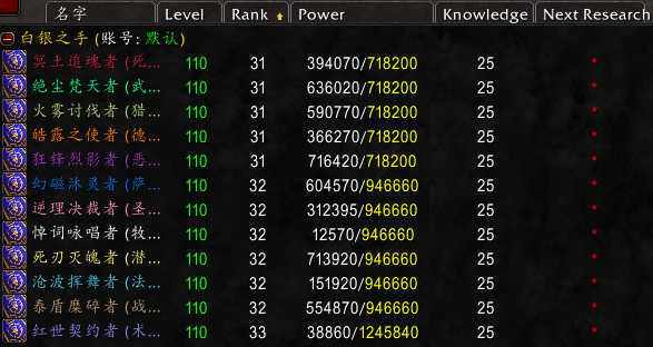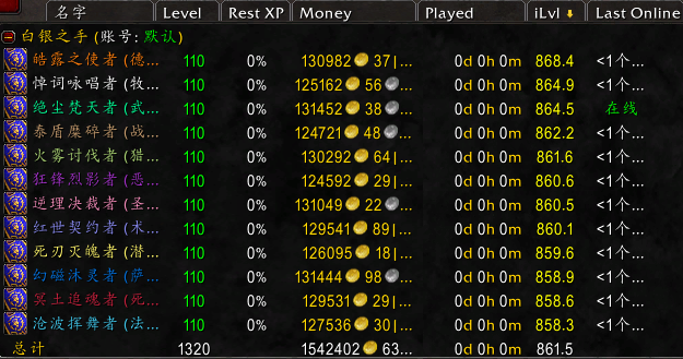 最后Altoholic这个插件对于多号的小伙伴来说简直就是神器啊,上面的所有截图就是这个插件的,强烈推荐