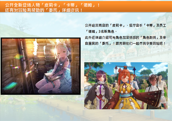 光荣日前公布了《苏菲的炼金工房2 ~不可思议梦的炼金术士~(Atelier Sophie 2: The Alchemist of the Mysterious)》新玩法、角色介绍,包括经营商店的“皮莉卡”、餐厅店长“卡蒂”及员工“诺姆”3名新角色,以及“角色剧情”和居民委托玩法,一起来了解下吧。
