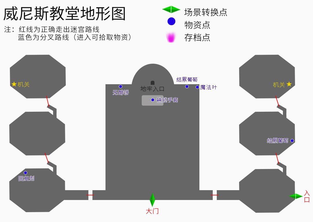 支线任务1.与修道院门口右边森林的小道士对话,答案是“犹大”,获得物品“回复剂x2”。2.魔界商人:与大厅左下角石狮子对话可以获得“5个灵界指标”,同时可以购买商品。3.秘密钥匙:与被放出来的洁西卡对话获得一把钥匙,用它可以进入杰西卡家的地窖(在威尼斯城)。4.虎皮衣:迷宫上方打败“阿加希欧”可以获得虎皮衣。