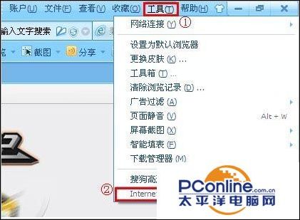 点击浏览器左上方的“工具”→“Internet选项”,与ie浏览器清除方法类似。
