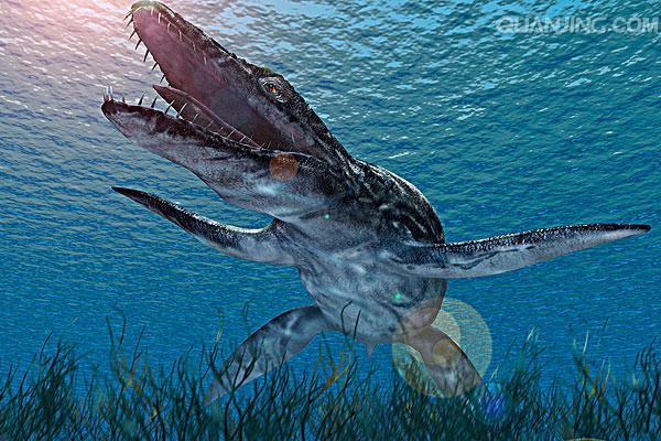 然而霸王龙再强,也只能在陆地上转一转。而在更广袤的大海里,还有一种更加恐怖的生物——滑齿龙。