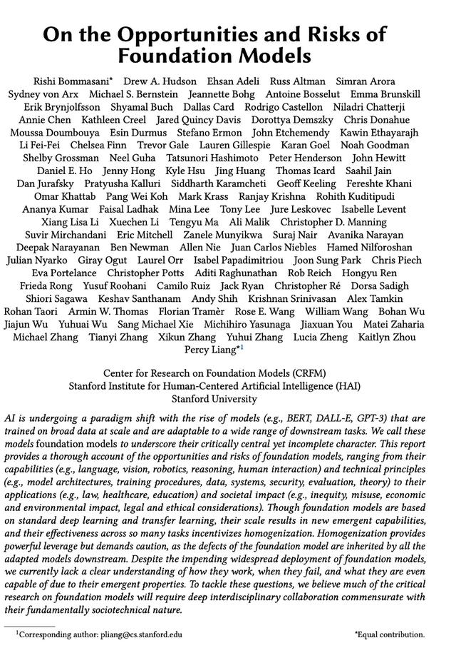 北京时间8月25日结束的美国斯坦福大学基础模型研究中心(Center for Research on Foundation Models, 简称CRFM)研讨会上,来自不同学科领域的知名研究者讨论了“基础模型”在种族/宗教歧视,社会不平等和信息安全等多种层面上可能带来的威胁以及需要研究的问题。