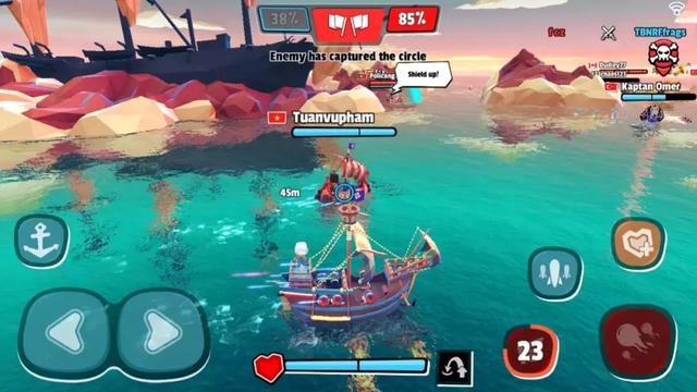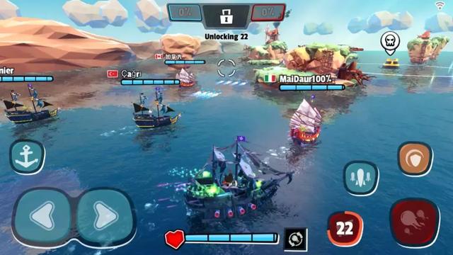 在核心玩法层面,《海盗法则》则沿用了传统轻竞技游戏的基本框架。游戏中玩家之间组队进行5V5海上竞技,玩家在实战中的可操作性较强,有着抛锚&启航、加速、护盾、主炮、技能等多种按键,整体来看操作性和策略搭配深度较强。