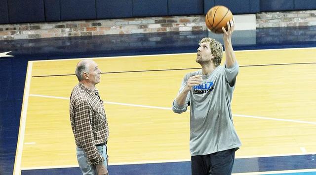 那是一个近乎残酷的苦练的夏天:霍尔格带着德克,做了成千上万次面对多人包夹的假想,他在同一个夏天里完成了增重、单腿翻身后仰跳投和破解包夹的策应。后来的人们喜欢赞美金鸡独立的优雅,却不曾感受真正的难点:在低位要先完成力量上的对抗,然后利用腰背和下肢力量在空中调整出手。霍尔格在他15岁时候教给他的动作,最终改良成了NBA历史级别的必杀技。