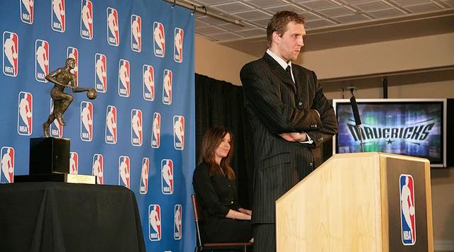 他穿着西装领到了那座MVP奖杯,你能想到所有的评论家和球迷极近羞辱之词,对敏感的德克带来多大的杀伤。更难的是,如果一个球员带领球队67胜,迈入180俱乐部,已经被评为最有价值球员,那他还有什么进步空间?和去年一样,他的球队输了,所以他输了。他开始习惯于NBA的道德标尺,简单而粗暴:你是球队最好的球员,所以荣辱集于一身。当老尼尔森用锋线群和高速反击碾压徒弟小将军时,你是MVP,你为什么不能力挽狂澜?