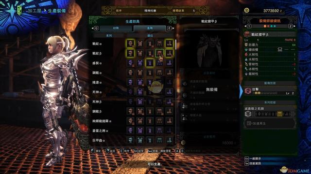 5、接下来就剩超会心和攻击了,继续去铁匠那看,提示,只要按C,就可以查找你想要的技能了。发现烂辉龙胸a,和战纹腰B。