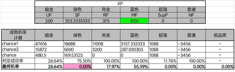 5、暗金物品降格后机率计入亮金,绿色物品降格后机率计入蓝色;