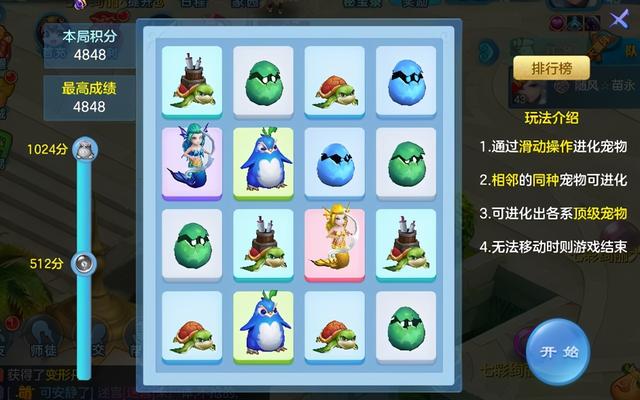 《梦想世界3》手游回合制战斗的玩法让少侠们流连忘返,其中的休闲玩法也丰富多样。例如爱宠进化论、御扇科举、萌宠消消乐等等,在玩家达到30级时,每周一、三、五的17:00-20:00通关爱宠进化论,玩法类似于我们平常游玩的2048,少侠们移动棋盘里的宠物图鉴,就会获得相应的经验奖励。这类休闲小游戏,不仅可以缓解刷本的高强度节奏感,还可以让玩家认识到游戏内各类宠物。